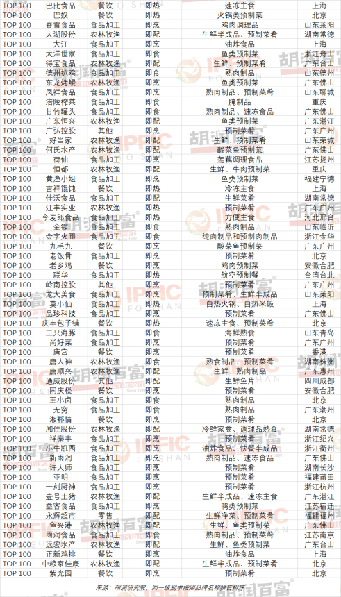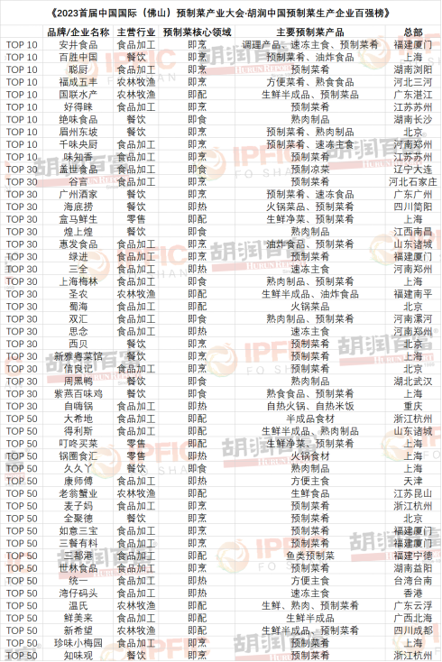 榜单列出了预制菜生产领域最具实力的中国百强企业,分为四个级别:10强、30强、50强和100强。