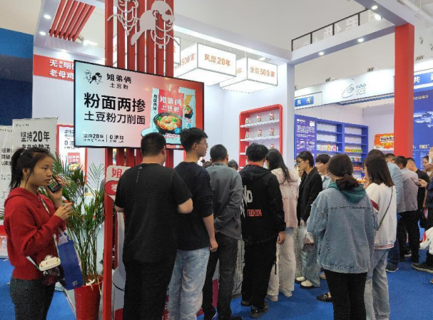 “跟门店口味一样吗?”“土豆粉里有多少配菜?”“有没有优惠活动?”在展会现场,记者注意到,姐弟俩土豆粉的展位前人头攒动,试吃的队伍排得很长,大家捧着红色的“土豆粉”碗,聚集在冰柜前向负责人询问产品的各种情况。