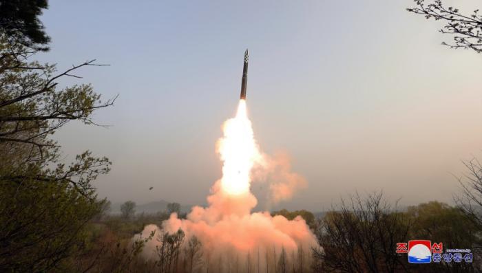 中新网4月14日电 据朝中社报道,13日,朝鲜进行了“火星炮-18”型新型洲际弹道导弹首次试射。朝鲜劳动党总书记、国务委员长金正恩在现场进行指导。