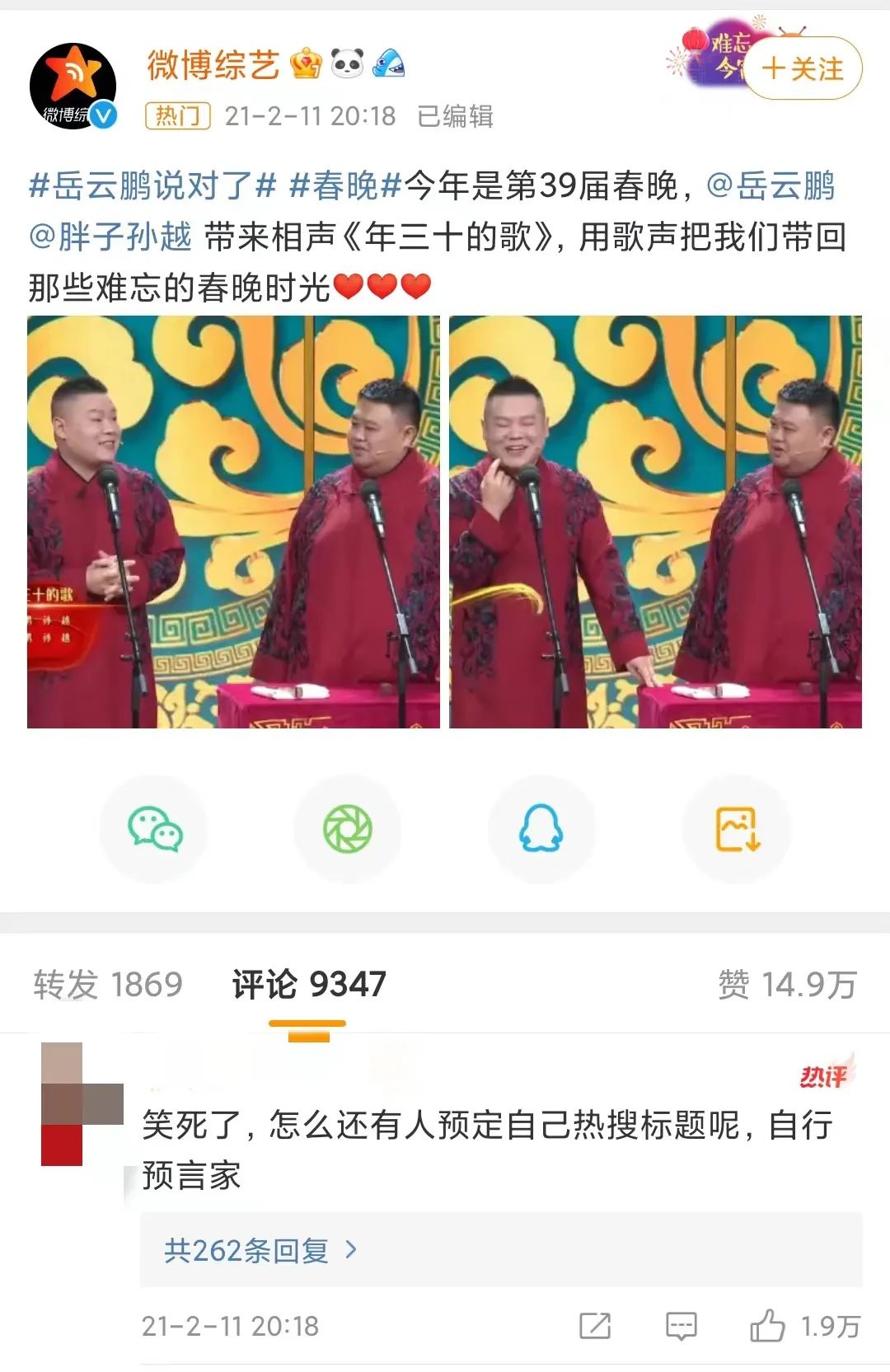 2021年微博热搜#岳云鹏说对了#图源:微博