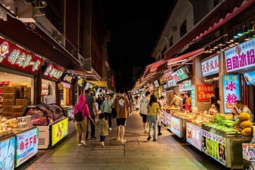 “路边的小吃也很不错,可以一边走,一边吃。”