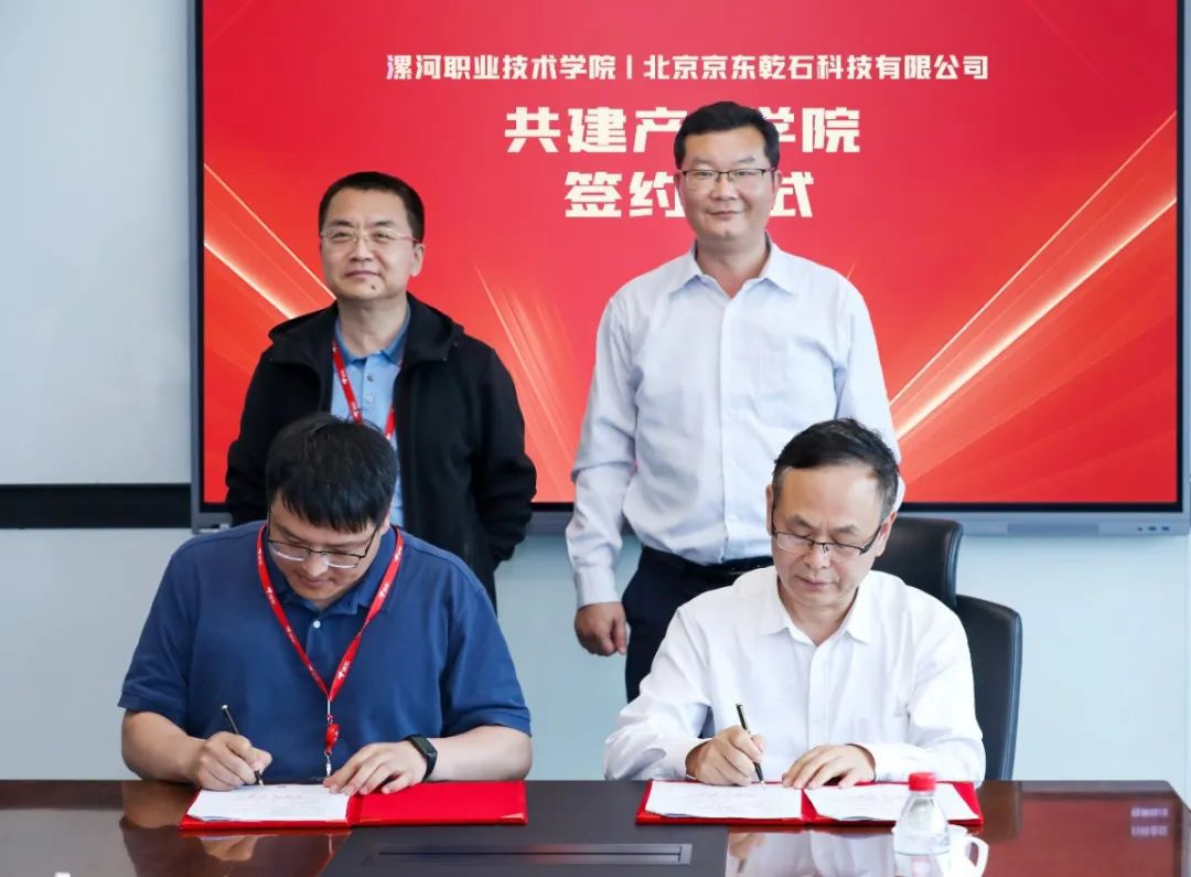 当天下午3时许,在北京京东集团总部,漯河职业技术学院与京东集团正式签署校企合作框架协议,校企双方将通过共建产业学院的方式培养更多高素质技能型人才。京东集团副总裁姜耀东、漯河职业技术学院党委书记易军鹏出席签约仪式。