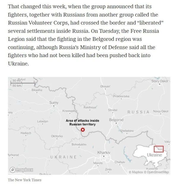 《纽约时报》对“俄罗斯自由军团”报道截图