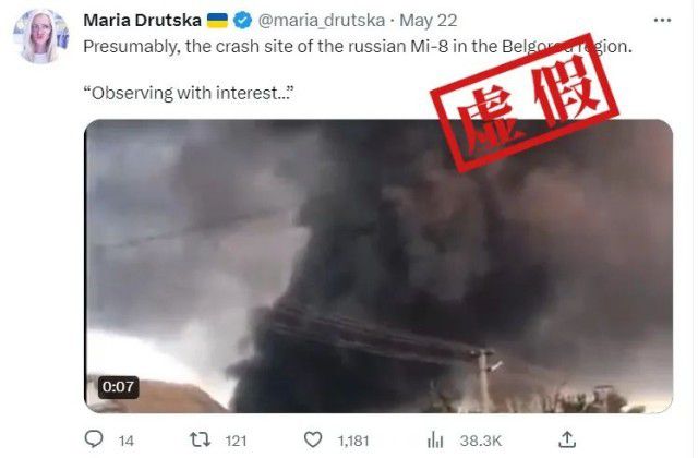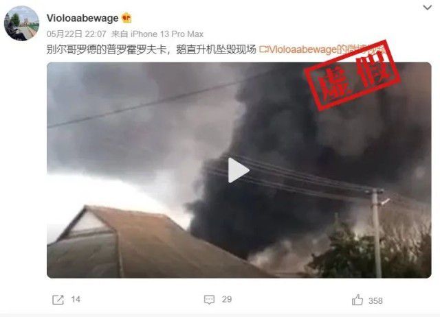 - 网传视频并非近期拍摄,而是出自克里米亚地区2022年8月发生的一次着火事故,与直升机坠毁无关。别尔哥罗德州州长也表示,近期并没有直升机在当地坠毁。