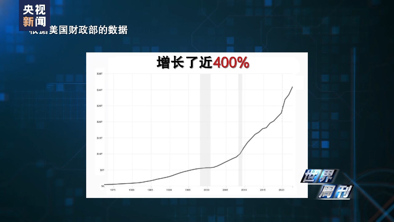 根据美国财政部的数据,从1972年至2022年,美国债务总额在20年间增长了近400%。