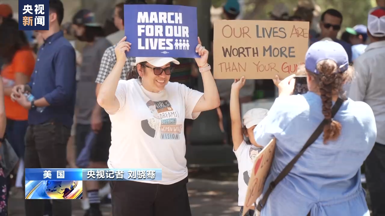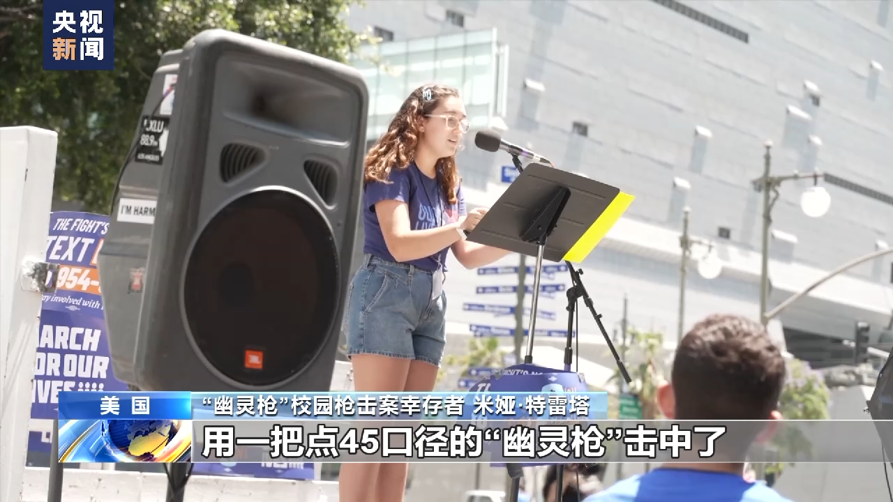 央视记者 刘骁骞:每年六月中旬,美国各地都会举行大规模的控枪游行。这里是洛杉矶市中心的格兰德公园,正在举行的这种活动的号召人之一就是“幽灵枪”的受害者。