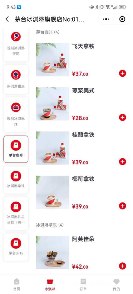 大河财立方记者注意到,茅台冰淇淋旗舰店大屏幕菜单中均为冰淇淋产品,没有列示咖啡产品。