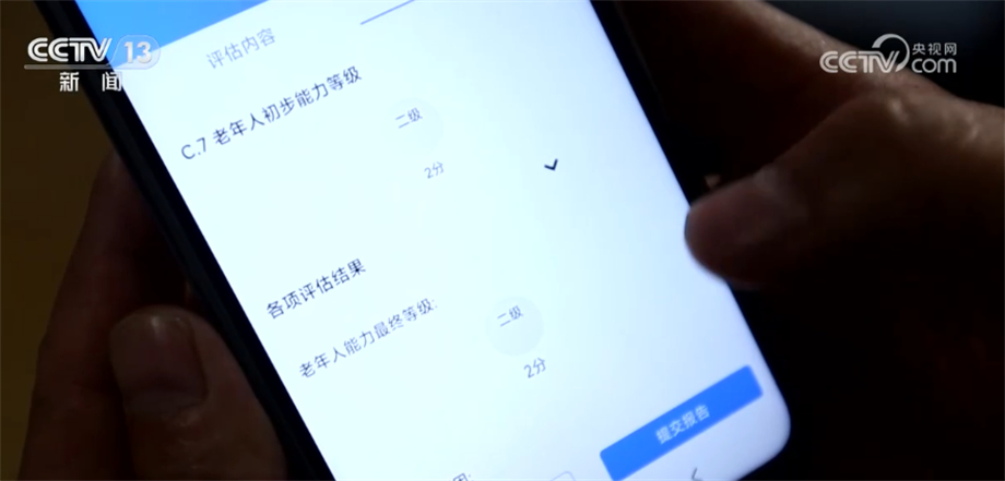 这是评估人员在对王宝英老人进行能力评估,通过综合评估老人的生活自理、基础运动等能力后,将老人的失能程度分为零到五级,根据失能等级享受养老服务优惠政策,王宝英老人被评为二级,可以签约家庭养老床位并享受6.5折优惠。