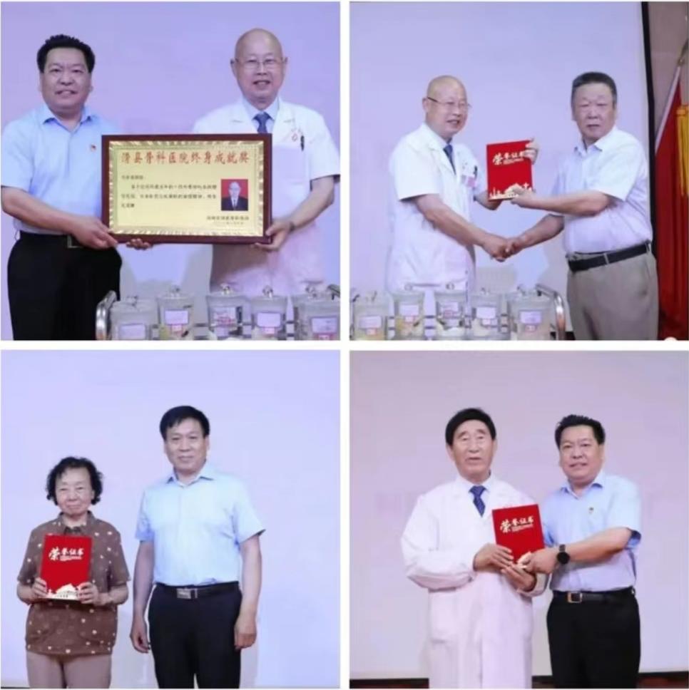医院领导分别为刘志成、梁二环、马多良等专家教授颁发终身成就奖及荣誉证书