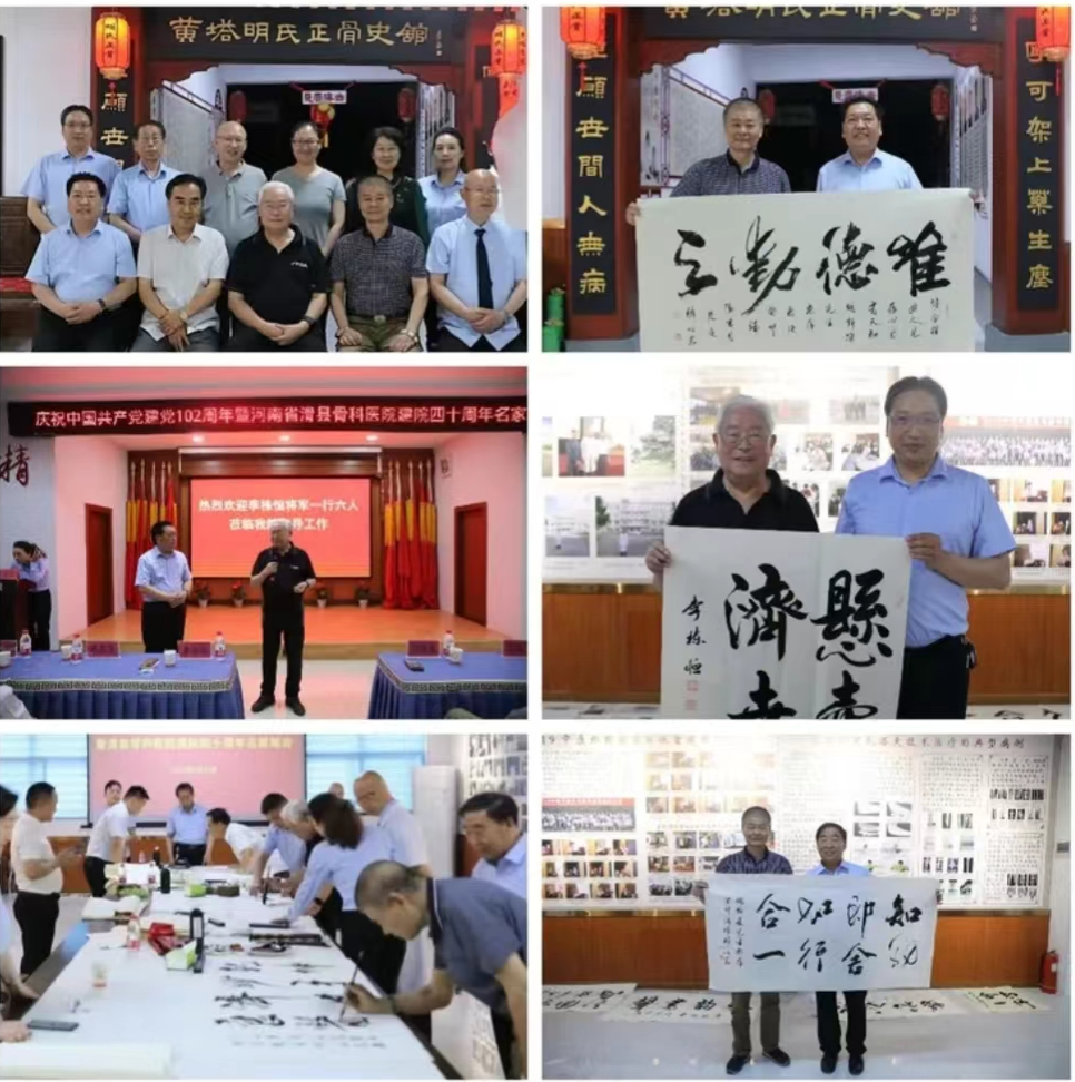 庆祝建党102周年暨院庆40周年名家笔会弦歌不辍芳华待灼,奋楫笃行履践致远。医院常务院长明新杰表示:水有源,树有根,我们永远不忘恩。正是由于先祖留下的黄塔膏药秘方、黄塔明氏正骨术和各位专家的传帮带,将先进的技术与理念倾囊相授,才有医院现在发展的大好局面。医院将以庆祝建院40周年为契机,以传承350多年的“黄塔膏药”“黄塔明氏正骨术”为基础,以创建三级医院为新的起点,秉承“厚德技精、悬壶济世”的院训,谱写滑县骨科医院新的篇章,为祖国医学事业的发展,为健康中国多做贡献。