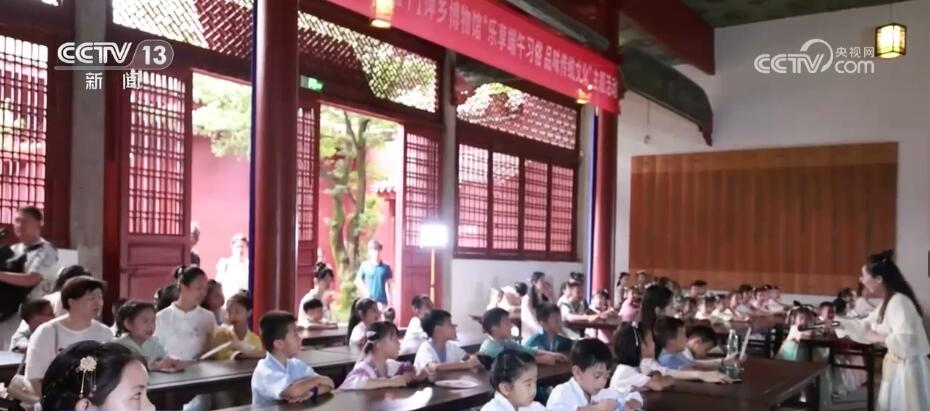 在江西萍乡,孩子们走进孔庙博物馆的国学讲堂,齐声吟唱《离骚》名句,感触先贤的高尚品质和家国情怀。在民俗文化志愿者的指导下,大家还一起手工缝制端午香囊和五彩绳,互赠端午礼物,体验端午节的文化内涵和独特魅力。