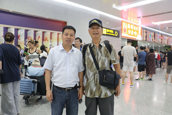 7月2日晚上,高双印与记者在江北国际机场合影。华龙网—新重庆客户端记者 陈发源 摄