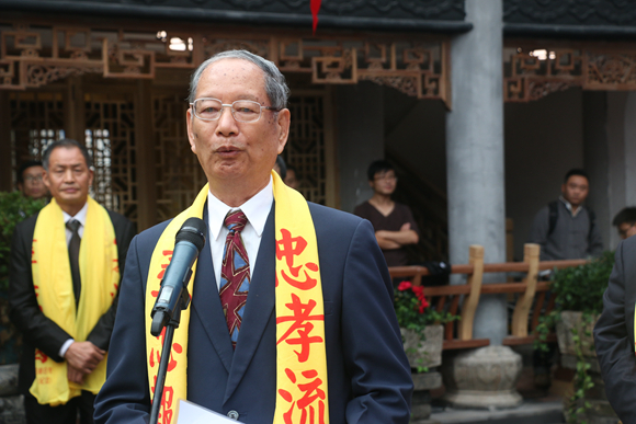 2015年10月30日,高双印在重庆关岳庙参加台湾日月潭文武庙和重庆关岳庙缔结友好仪式。重庆市岳飞文化交流协会供图。