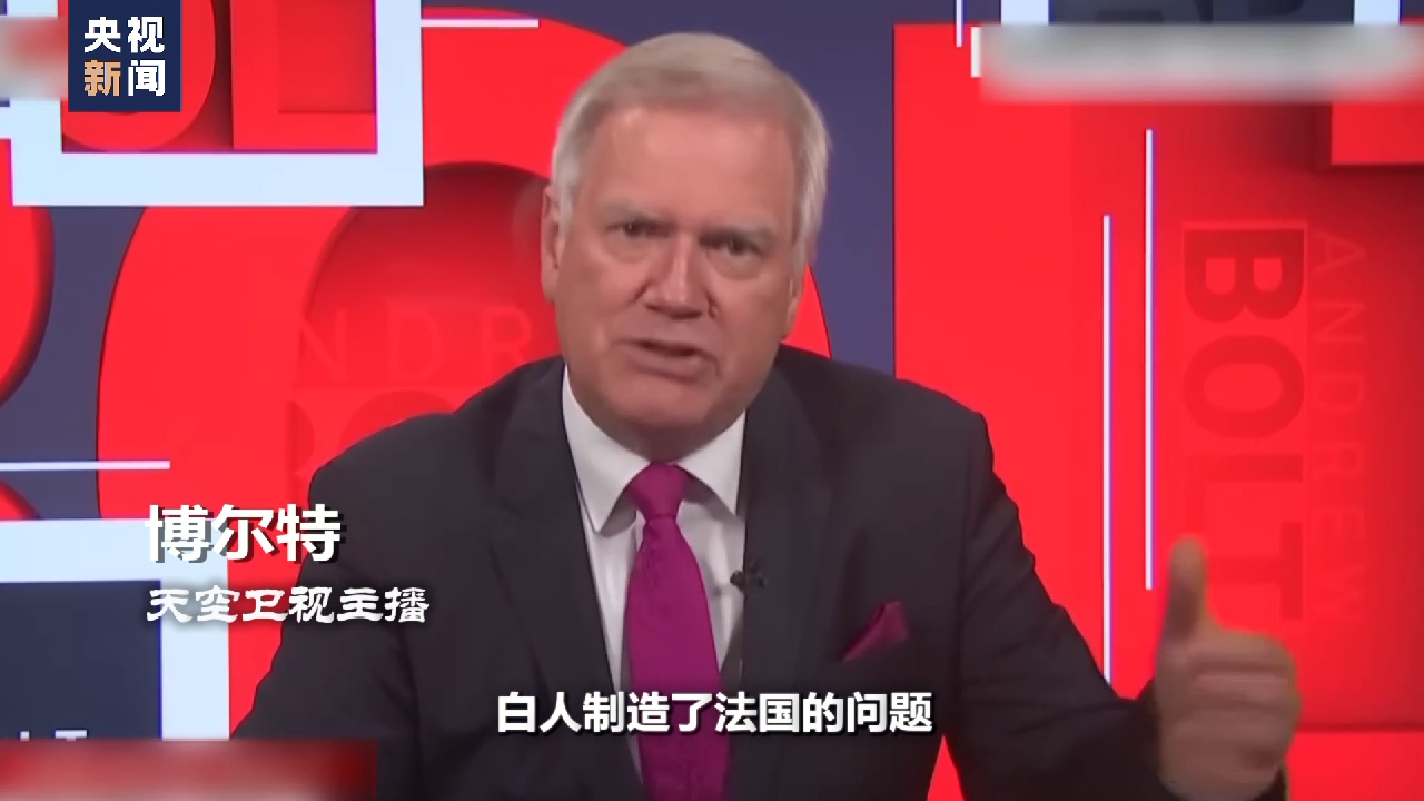 天空卫视主播 博尔特:美国主流媒体声称,问题源自白人社会,白人制造了法国的问题。很明显这不是抗议者的问题,尽管这帮人在纵火、在抢劫、在开枪、在破坏。