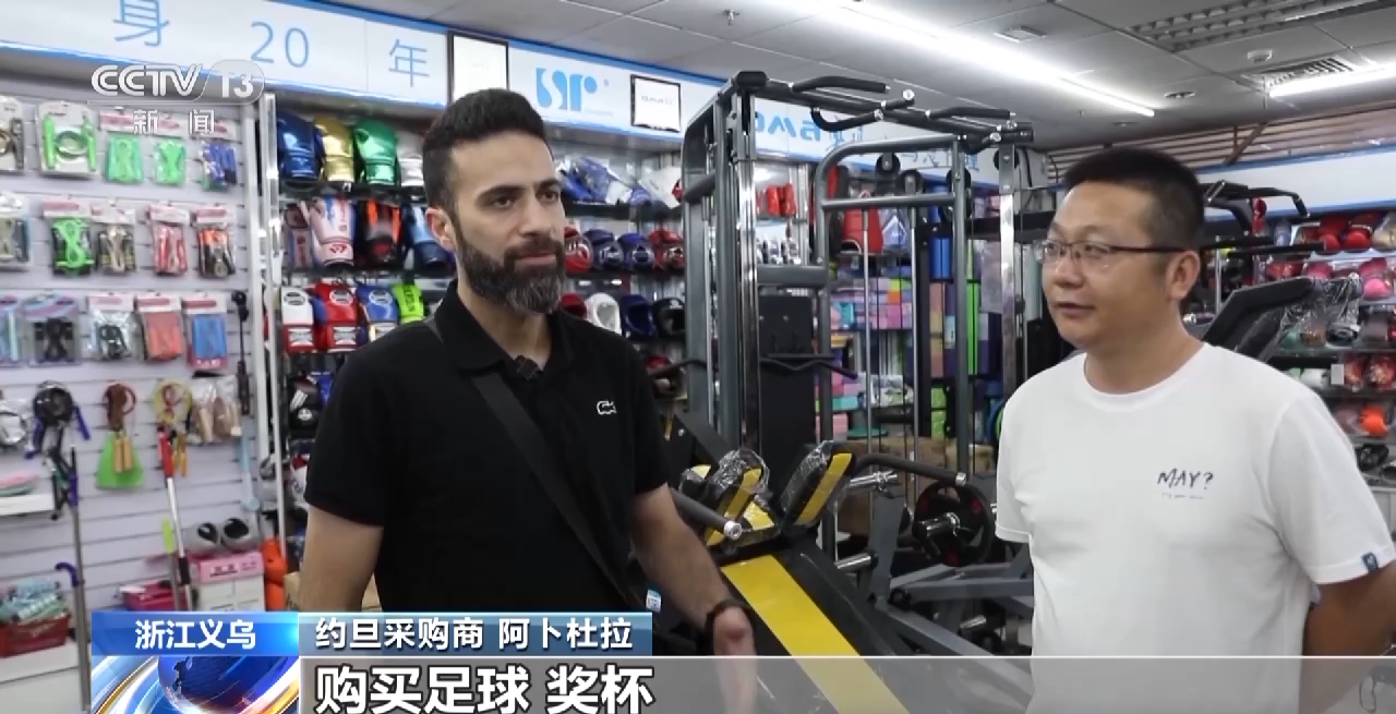 在义乌国际商贸城一家经营体育用品的店铺里,来自约旦的采购商阿卜杜拉在翻译的帮助下,下了一笔超过百万元的订单。阿卜杜拉告诉记者,今年是亚运年,在他们国家,体育用品的销量持续攀升,因此他也看准商机,准备增开一家店铺。而这次来,就是为新店进货。