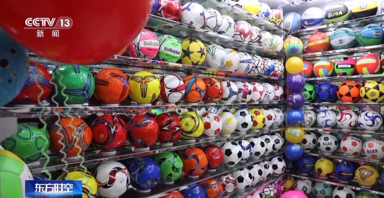 义乌国际商贸城某店铺销售经理 徐丽:最近像足球、排球、乒乓球,以前客户可能带个三件五件,每件五十个,现在会多一点,可能十几件、二十几件。