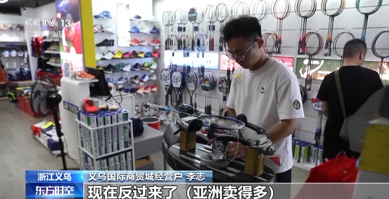 义乌国际商贸城经营户 李志:像我们这个球拍主要是卖到非洲和亚洲的,以前非洲是卖得比较多的,大概一个月能出到7000副左右,亚洲出到4000副左右,现在反过来了,亚洲卖得多。