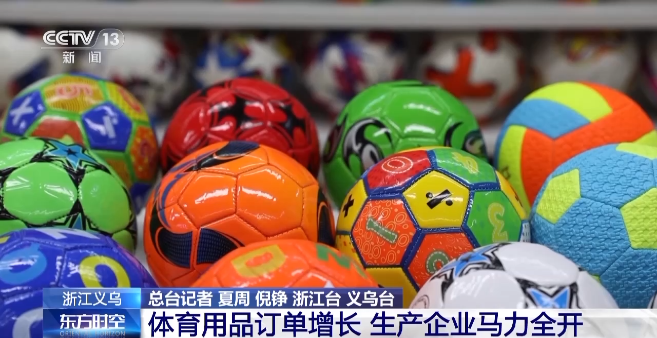 义乌某足球生产企业负责人 郑国群:今年新增了一些亚洲客户,由于亚运会的举办,亚洲客户像越南、菲律宾这些客户都过来采购,单子下得还挺多的,像每个客户单子下过来,都要求我们做四百件、五百件,每件五十个,因为我们生产能力有限,只能给他安排两百件、三百件,陆续给他出。