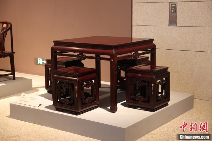 “凳子的形制像‘回’,四个龟足谐音‘龟’,寓意回归。四张凳子围绕一张桌子,寓意港、澳、台、侨围绕在祖国的周围,同根、同魂、同梦,实现中华民族伟大复兴的梦想。”陈玉树说:“用作品来表达时代故事,刻写时代烙印,就是新时代古典家具的现实意义,也是我们此次展览的目的。”