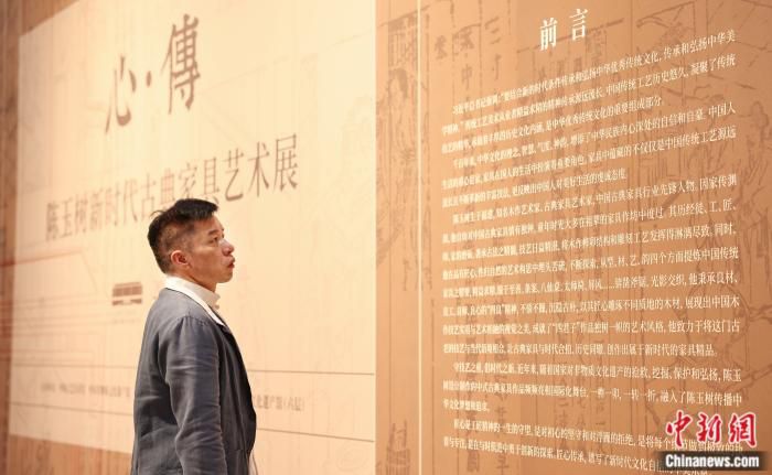 “目前这个展厅展出了20套、96件作品。”陈玉树介绍:“我们从博大精深的中华文化中去吸取能量,从源远流长的中华历史中去寻找文脉,这就是新时代古典家具最核心的特点——‘心传’。”