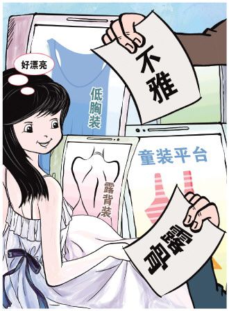 “穿衣自由是指一个人可以受自己意志支配,自由地去选择自己想要穿的衣服,不受他人的限制与阻止。与其问儿童对于穿衣是否享有选择权,不如说是否要对儿童穿着尺度有所限制。面对日渐成人化的童装,孩子审美观正在潜移默化地被影响着,这种导向其实会诱发孩子心理早熟,不利于孩子身心健康成长。”倪娜说。