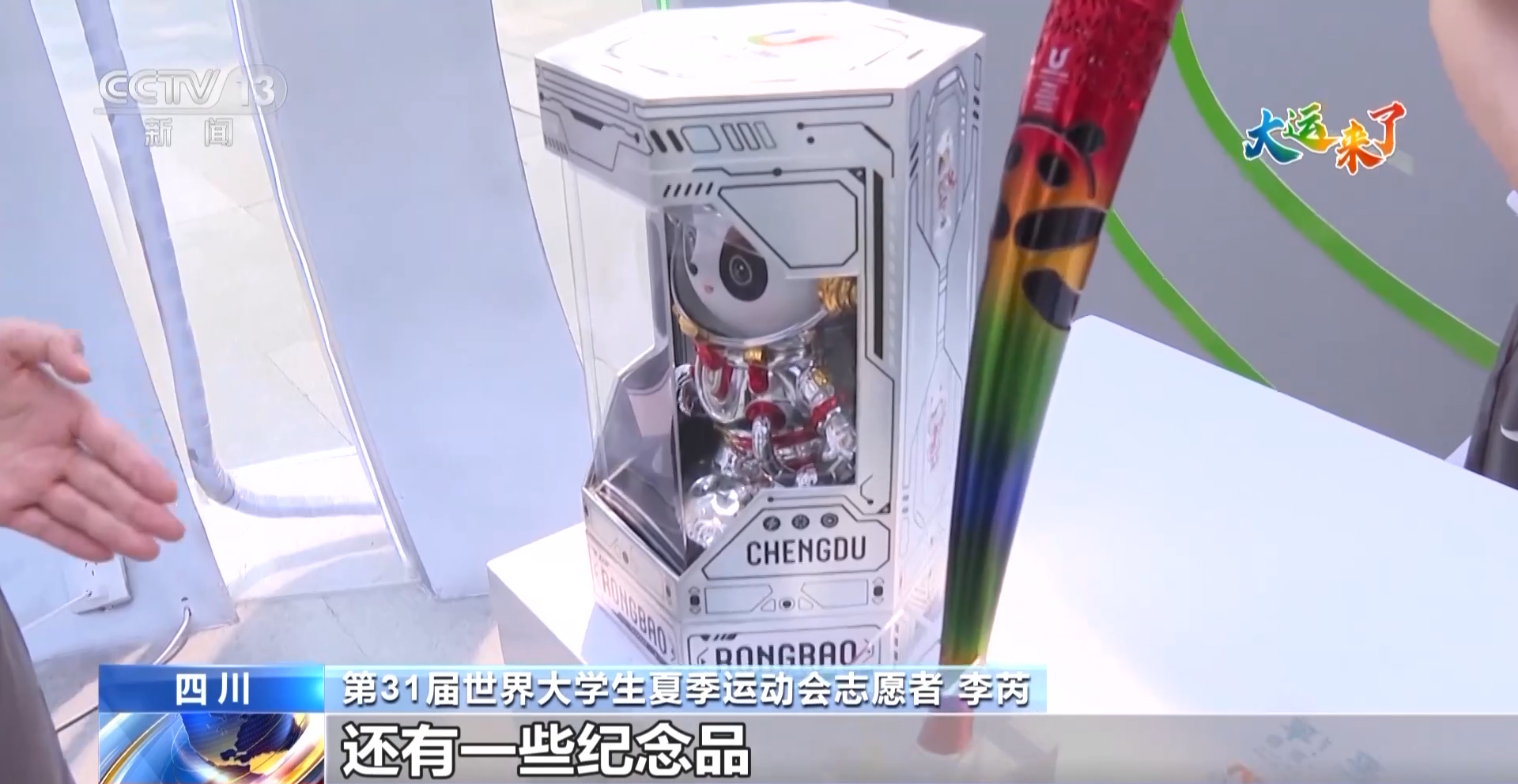 第31届世界大学生夏季运动会志愿者 李芮:进入小站可以看到志愿者工作台,展示了本次大运会的一些吉祥物,还有一些纪念品,为本次大运会准备的一些宣传手册。我们还准备了急救包和饮用水,以备不时之需。