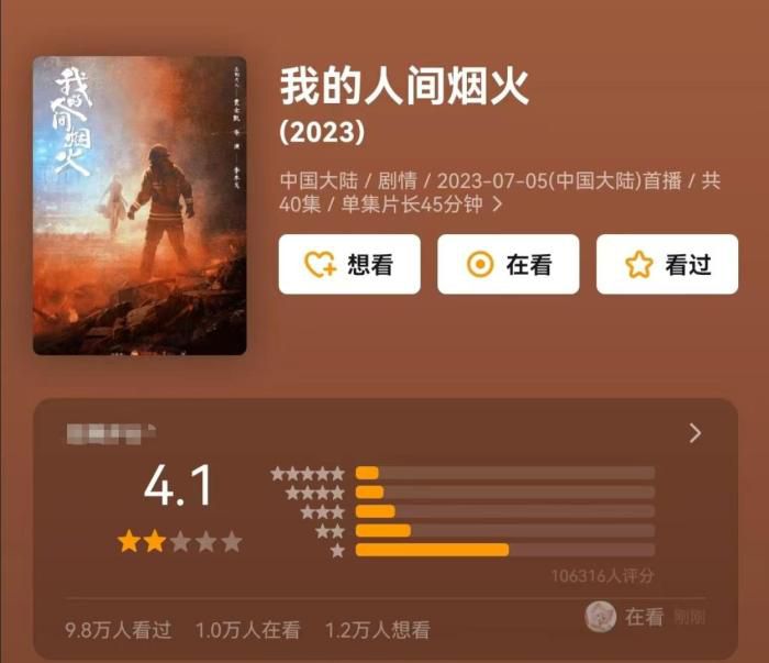 中新网北京7月24日电 最近讨论度极高的电视剧《我的人间烟火》终于迎来大结局,豆瓣上18万网友参与打分,51.3%的观众给出一星评价,即便分数已经低到4.1,但不少网友觉得还有下降空间。