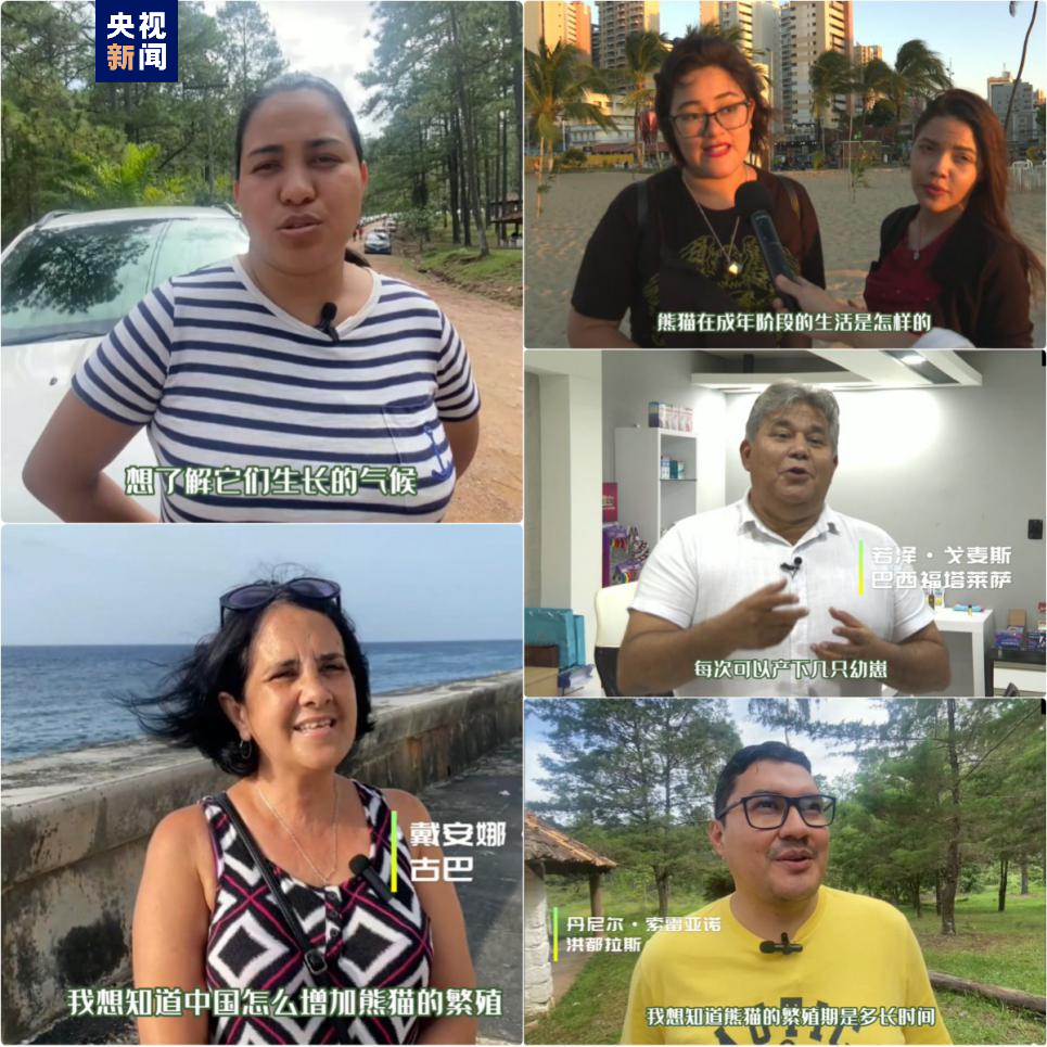 本次街采活动中,总站记者特别设计了一个环节,邀请拉美民众提出自己关于熊猫最想知道的问题,并请远在四川成都的中国民众尝试作答。这个难得的机会激发出拉美受访者无穷的好奇心,熊猫生长的气候条件、睡眠习惯、平时爱吃什么东西、一次繁殖多少幼崽,关于熊猫的事儿,大家全部都想知道。巴西民众最想了解熊猫脱离保育、成年以后独立生活的状态,古巴老百姓想知道中国人在繁育熊猫方面做了哪些事情。拉美民众关于熊猫的问题五花八门,还不乏专业性,能不能得到令人满意的回答呢?