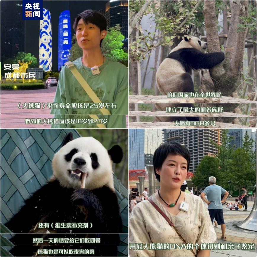 带着对大熊猫满满的好奇心和喜爱,地球另一端的总台CGTN西语网红记者来到“滚滚”的家乡——中国四川省成都市做随机街采。令记者没有想到的是,采访中遇到的成都市民认为这些问题“毫无难度”,熊猫的故乡竟然隐藏着这么多熊猫专家!采访中,成都市民告诉记者,大熊猫的平均寿命是20-25岁、保护区里的大熊猫一天要吃四顿饭,还有宵夜可供享用。中国建立了大熊猫遗传数据库,开展大熊猫DNA个体识别和亲子鉴定,提升大熊猫的繁殖成功率。有关熊猫的疑问一次性得到解答!