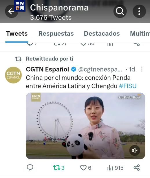本次街采于当地时间7月24日起在总台拉美总站和CGTN西语频道脸书、推特、照片墙等海外社交媒体平台推出,并被巴西《论坛》杂志、阿根廷合作广播电台、古巴国家电视台加勒比频道等当地知名媒体转载播发,累计触达受众超2000万。可爱的大熊猫收获一众拉美“粉丝”的热情关注和点赞,远在地球另一端的人们也纷纷为即将举办的成都大运会打call!
