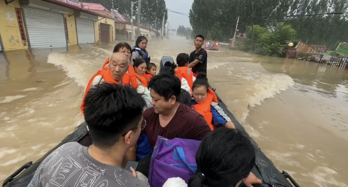 延津斑马救援队一刻不停,9个人,3辆车,3条船从延津县出发,一到涿州马上投入救援。“我是中共党员,也是一名退伍老兵,我必须冲到最前面。”该救援队水域队队长张强说:“在东仙坡镇一天一夜,我们转移群众100余人。”
