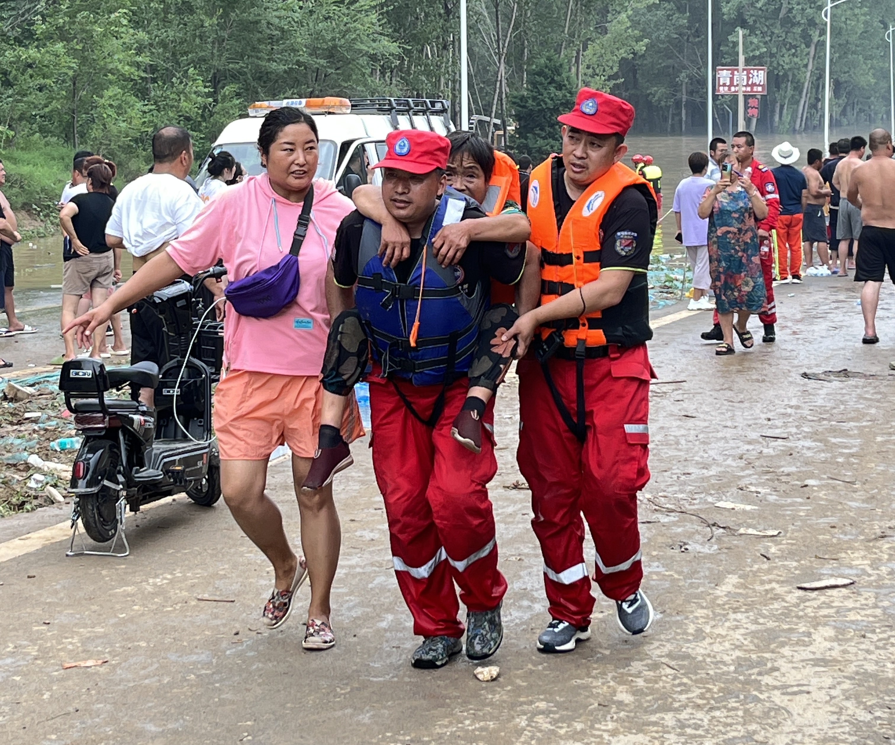 “姑娘,从哪往深水区合适?我们要去支援。”8月2日6时许,朱芳芳整理着木材,刚赶到涿州的救援队搭把手问路,听到熟悉的口音,芳芳扭头看到门口挂着“延津斑马 驰援涿州”条幅的“豫G”救援车,眼泪奔涌而出。
