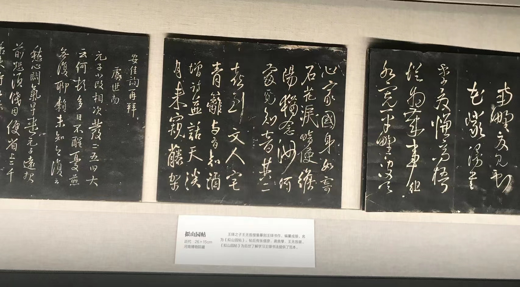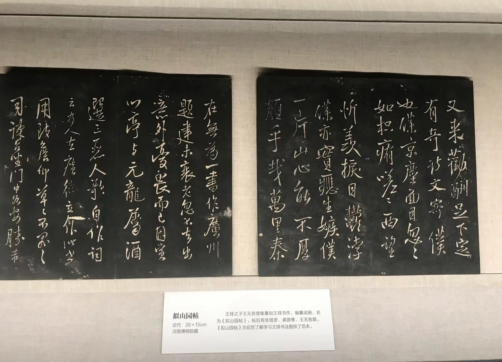 8月3日,参加“跟着著名考古学家去寻商”活动的记者,在中国文字博物馆三楼参观了“觉斯翰墨——王铎《拟山园帖》拓片展”,这是继河南博物院“风樯阵马 笔力扛鼎——王铎书法艺术展”我省举办的又一个王铎书法展览。