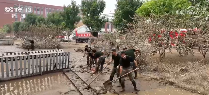 武警河北总队保定支队支队长 房敏超:学校有十一栋建筑,一层全部被水淹了。我们现在勘查完之后,先把一楼二三十厘米的淤泥清理出来。
