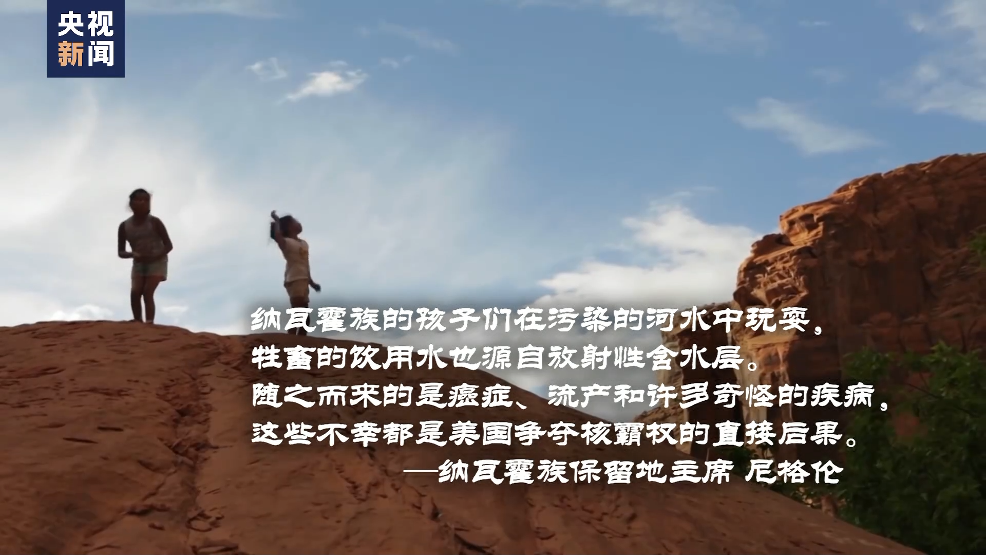 纳瓦霍族的孩子们在污染的河水中玩耍,牲畜的饮用水也源自放射性含水层。随之而来的是癌症、流产和许多奇怪的疾病,这些不幸都是美国争夺核霸权的直接后果。——纳瓦霍族保留地主席 尼格伦