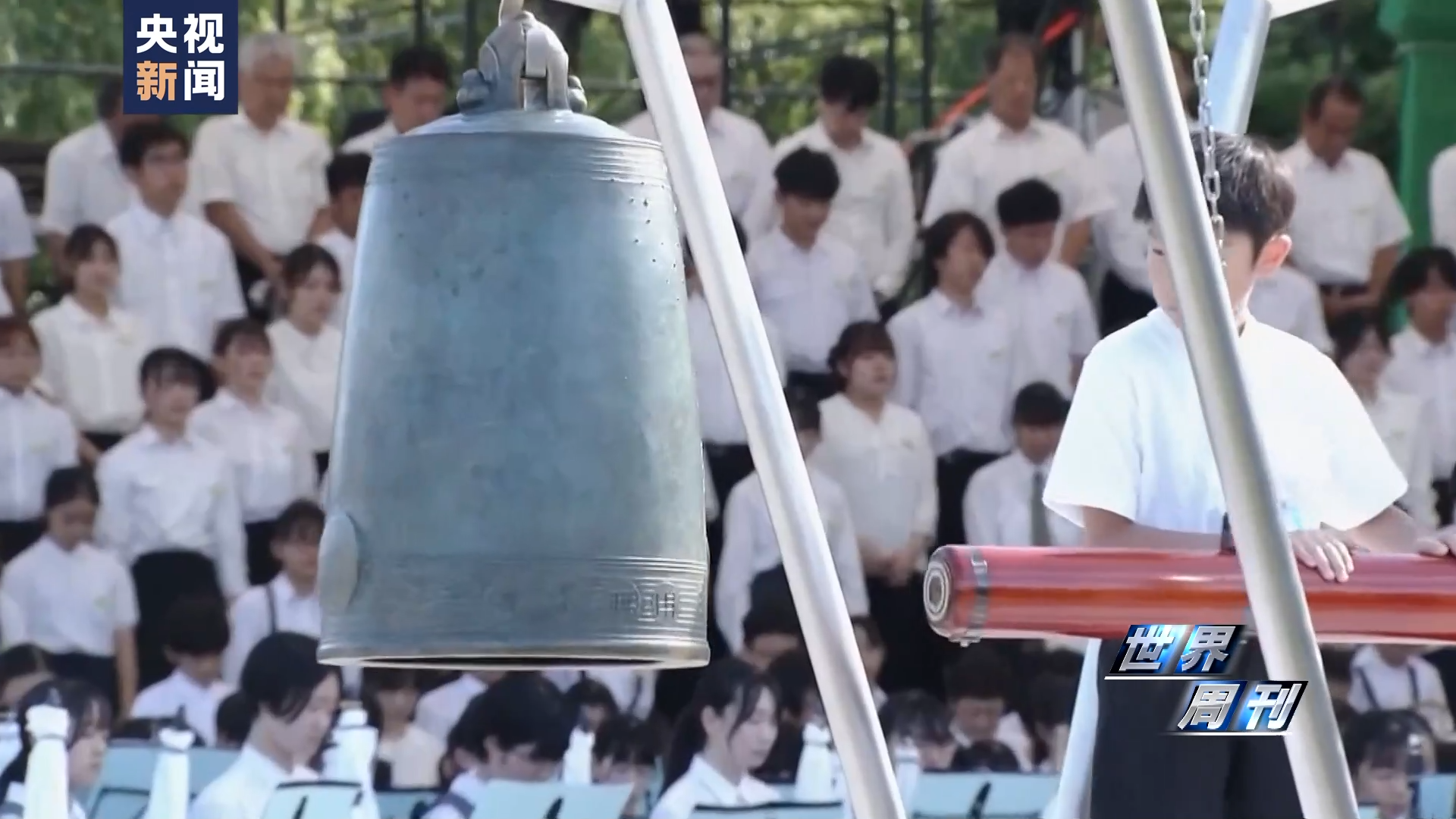 8月6日,在原子弹爆炸78周年的纪念活动上,日本广岛民众在广岛和平纪念公园的原子弹爆炸遗址敲钟。