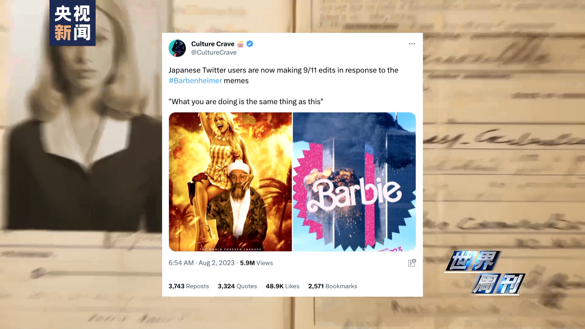 有日本“X”也就是推特用户,将美国9·11遇袭的照片进行了P图,并发文称:“这就是你们的所作所为给我们带来的感受”
