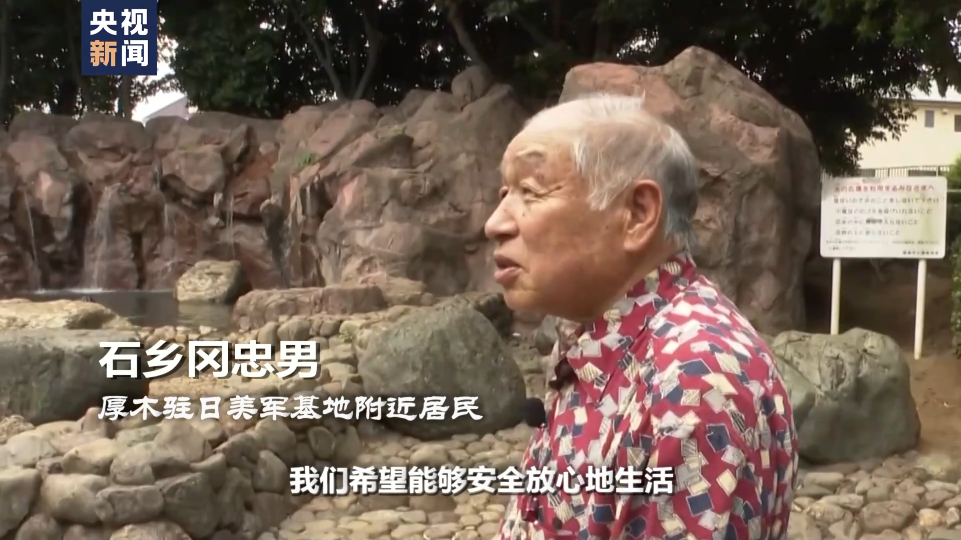 厚木驻日美军基地附近居民石乡冈忠男:我们希望能够安全放心地生活。这里本应是孩子们自由嬉戏的场所,但想到水受到污染会影响孩子的健康,我们实在无法原谅造成污染的美军基地。