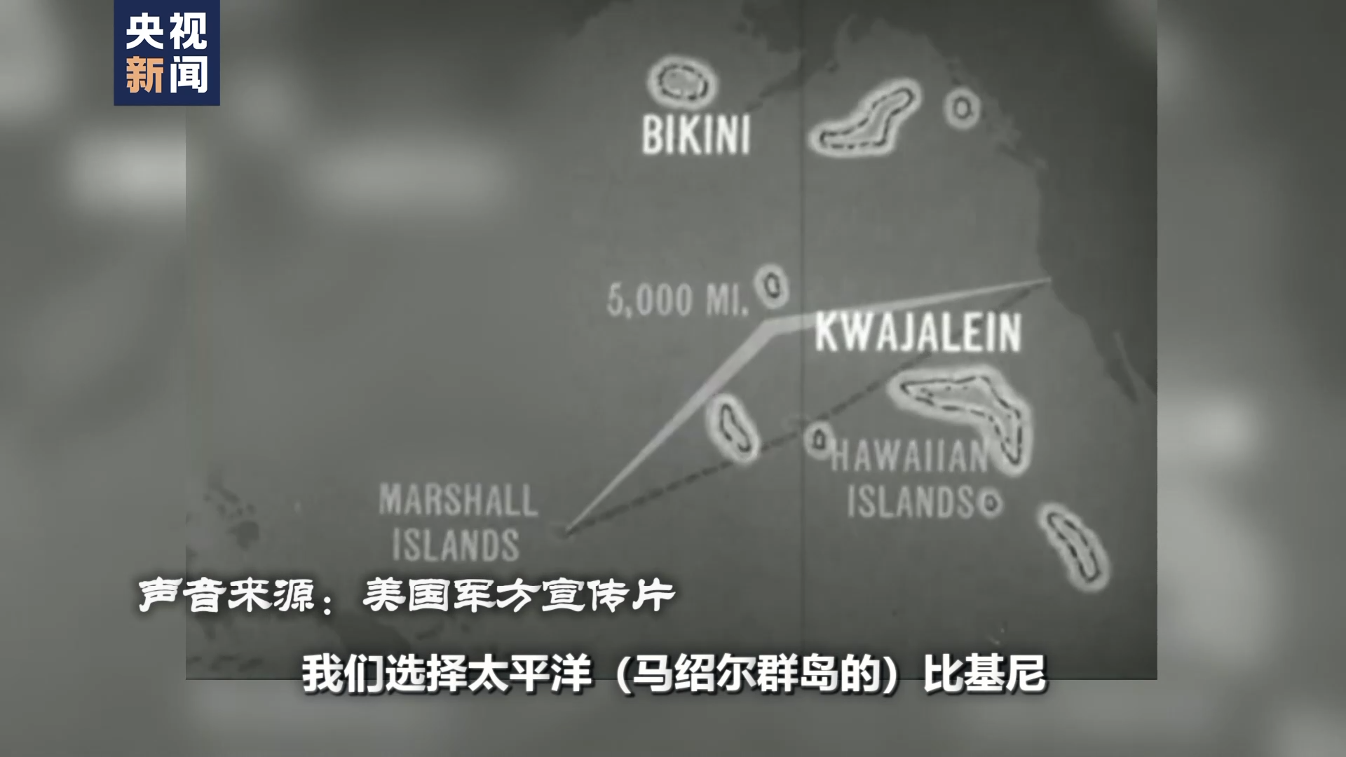 美国军方宣传片:这就是“十字路口行动”,我们选择太平洋(马绍尔群岛的)比基尼、夸贾林和埃尼威托克环礁是因为(在此试验)不会有很多人被置于危险的目标之中。