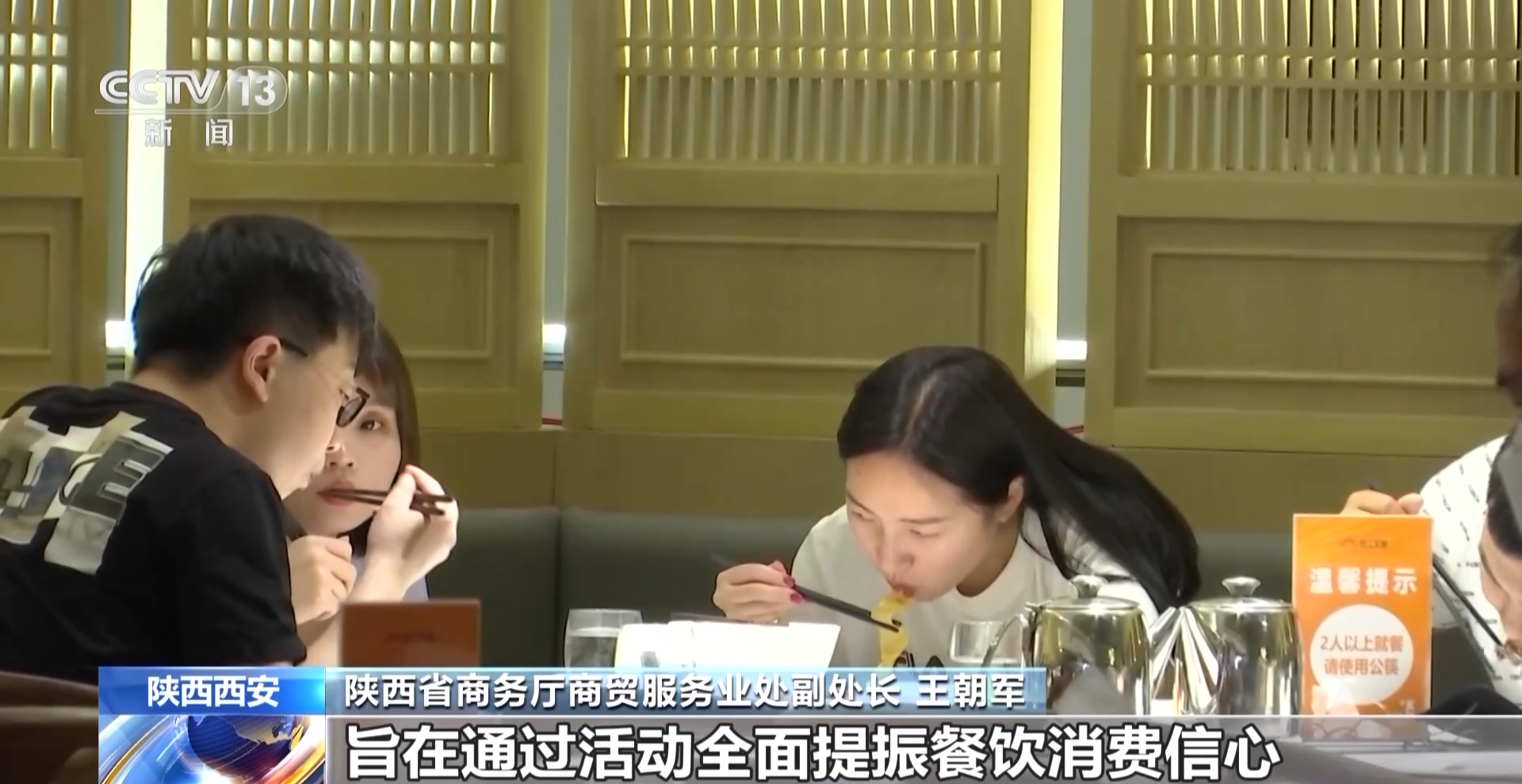 陕西省商务厅商贸服务业处副处长 王朝军:我们将在全省共组织开展222场次的餐饮特色促销费活动,通过活动全面提振餐饮消费信心,激发餐饮消费活力。