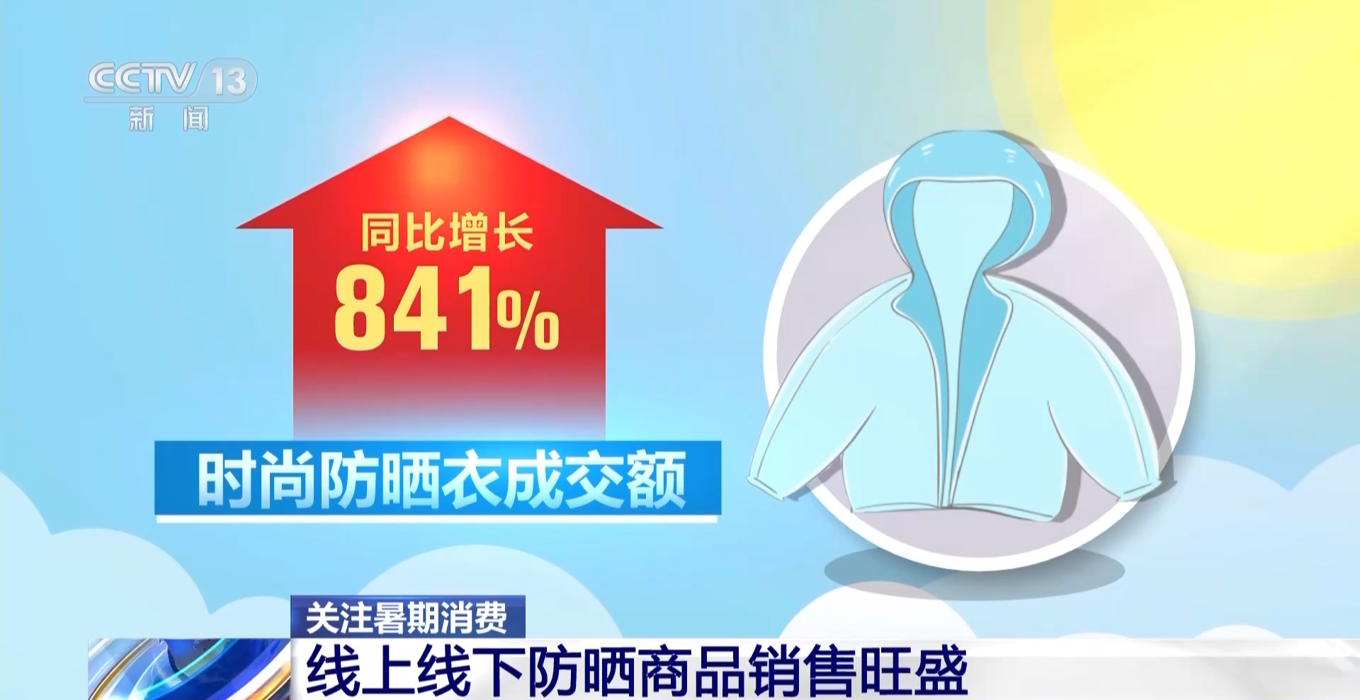 在线上,各类防晒、制冷产品也迎来了销售高峰。有平台数据显示,今年7月以来,防晒相关产品迎来销售爆发,其中,时尚防晒衣成交额同比增长841%。