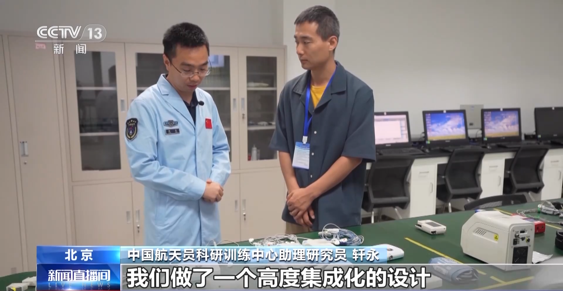 中国航天员科研训练中心助理研究员 轩永:我们做了一个高度集成化的设计,12导心电仪集成了常规的12导心电、运动心电、心电holter(动态心电图)、急救心电4种设备,通过集成化设计之后,集成到一个小型化的设备上来。
