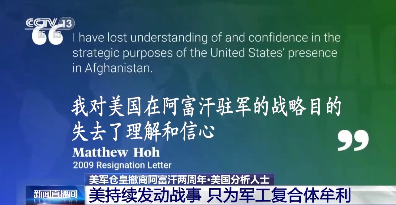 美军仓皇撤离阿富汗两周年丨美分析人士:美持续发动战事 只为军工复合体牟利