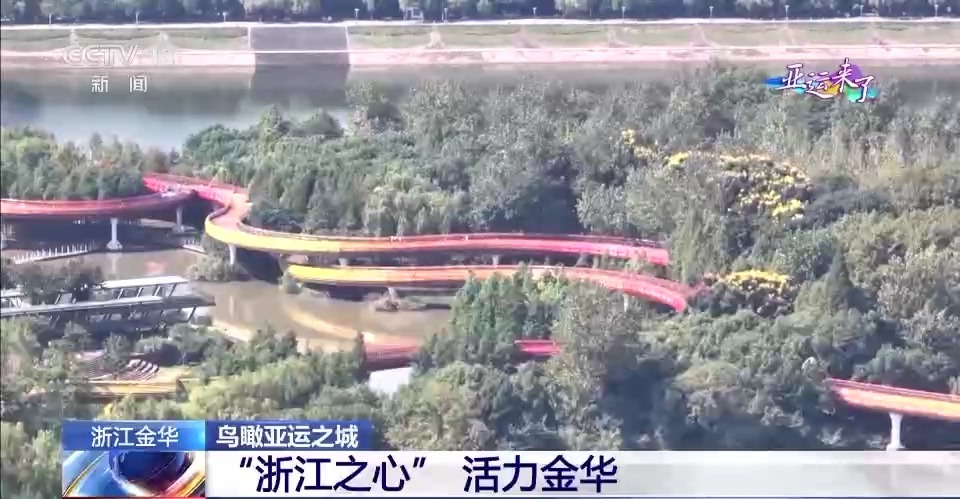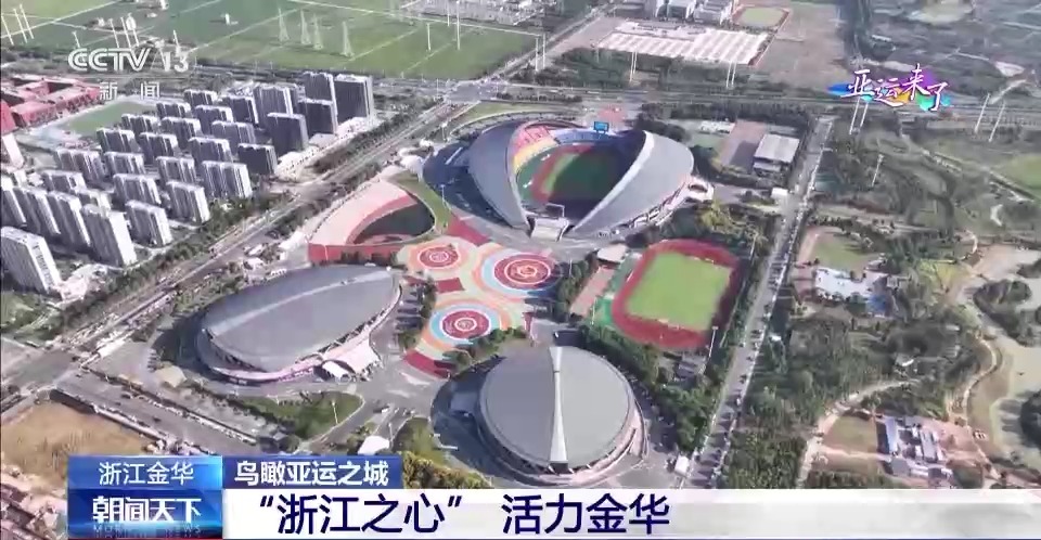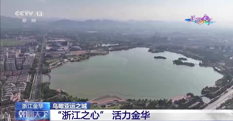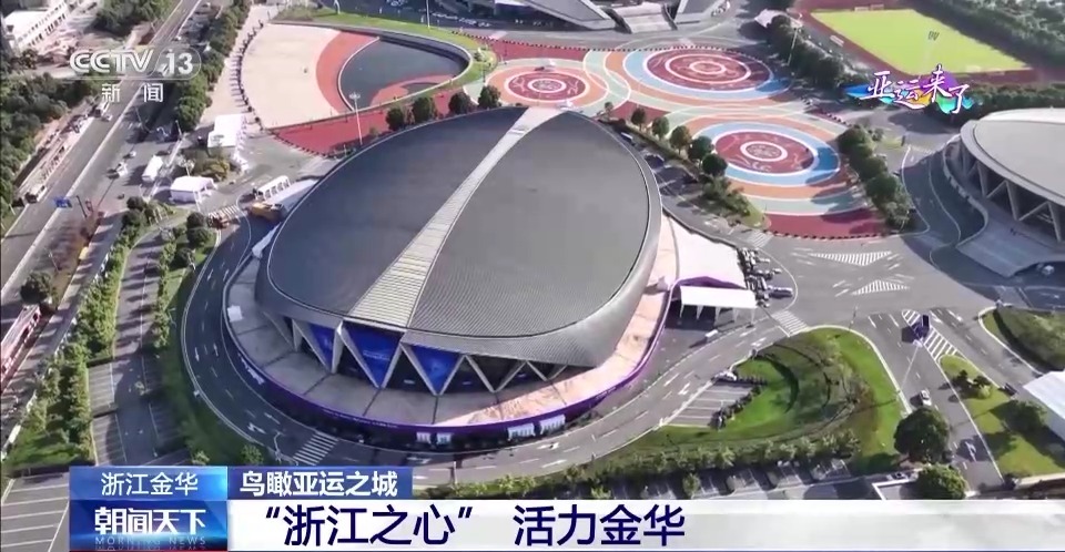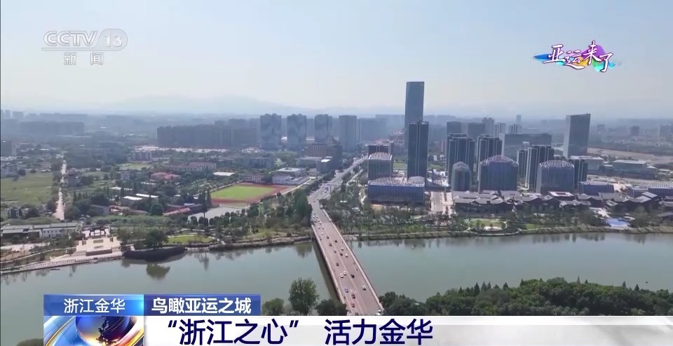 一江春水婺州城,浙江金华被誉为一幅生动鲜活的江南水墨画,作为杭州亚运会的协办城市,这里将举办藤球赛事和足球小组赛。鸟瞰亚运之城,今天(9月16日)看金华。