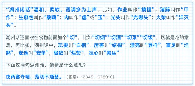 湖州话是吴语的代表方言之一,与苏州话一样,是“吴侬软语”,当地人称“湖州闲话”。