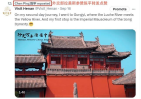 聚焦“行走河南·读懂中国”中外媒体黄河行,采访俄罗斯、英国、巴基斯坦、韩国记者,推出“外国记者看河南”系列视频4期。以文旅地标为主题,推出《打卡观星台,看古人如何仰望星空》《国内仅存的<帝后礼佛图>原来藏在这儿》《1311年前,“诗圣”杜甫出生在这里》等双语短视频10期。海外社媒平台阅读量近30万次,多次得到中国外交部公使刘永凤、中国外交部拉美司参赞陈平、中国驻圣保罗总领事陈佩洁、中国驻古巴大使马辉、中国驻大阪总领事薛剑等中国驻外使节的点赞、转发。微博话题#人类文明从河而来#外国人眼中的黄河有多中#等,多次登上郑州、许昌同城热榜,话题阅读量近200万。
