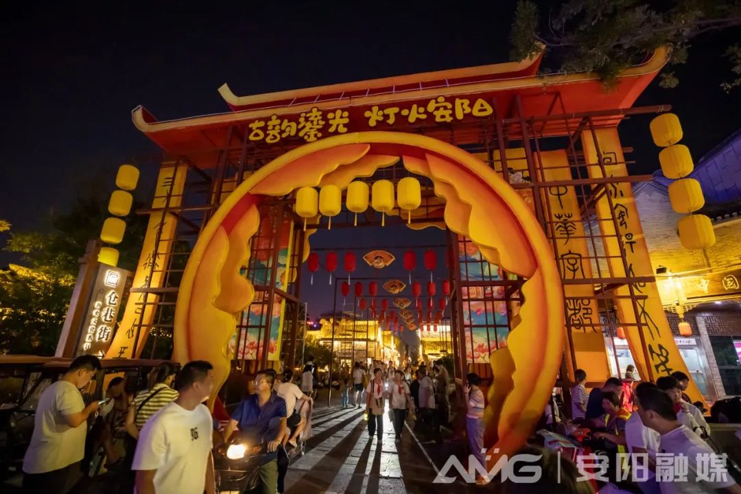 文化为墨,匠心绘景,古城经一番精雕细琢、灯光植入,文化与旅游碰撞出耀眼夺目的光芒,孕育出生机无限的业态:行至仓巷街,细品甲骨文、殷商文化、汉字发展史、碑石篆刻等字都文化;走进县前街,观赏造型唯美、寓意美好的花灯,感受国潮灯组的辉煌灿烂;置身安阳平席馆,品尝安阳传统美食。“古城夜游”将安阳厚重的文字文化、殷商文化、饮食文化等聚于一城,孕育出精彩纷呈的百景百业,描绘出一幅夜景美丽、夜市兴盛、夜生活文化浓郁的“不夜之城”。
