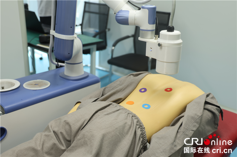 在北京理工大学郑州智能科技研究院,一款会做艾灸的机器人吸引了采风团成员的目光。据该研究院产业部负责人赵鑫介绍,艾灸机器人将现代人工智能与机器人技术相结合,能够打破现有艾灸行业发展局限。“艾灸机器人采用明火艾灸,保持传统艾灸的灸疗优势,同时可除烟、滤烟、定时除灰,解决传统艾灸环境差的问题,更重要的是可以人工标记定穴,精准理疗,支持穴位自动追踪,并且灸感感知,智能控温。”赵鑫表示,目前涉设备处于内部测试阶段,接下来会拿到市场中再进行测试,最终推广使用。