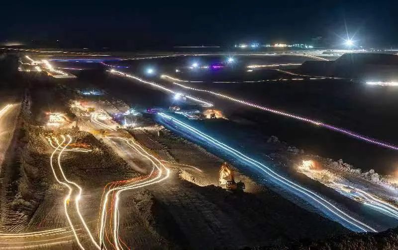 夜幕下,新疆疆纳矿业有限公司安全生产有序进行。融媒体中心记者 郭子毅 摄