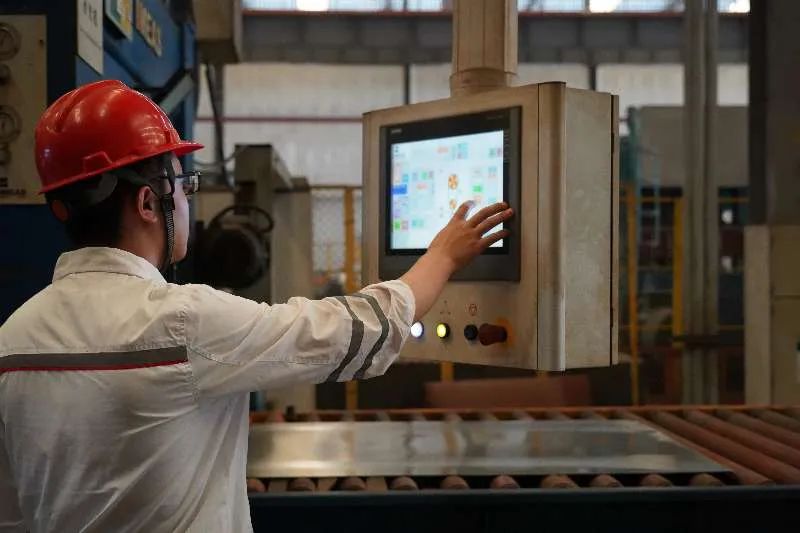 在新疆湘晟新材料科技有限公司生产车间,工作人员对钛合金板材进行加工。融媒体中心记者 郭子毅 摄